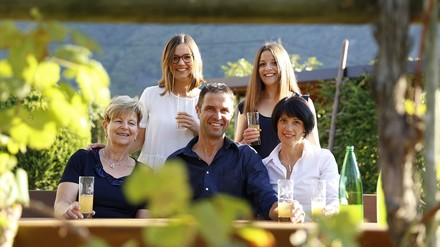 „Mit der Idee, den alten Bauernhof komplett zu sanieren, konnte sich meine Mutter zuerst nur schwer anfreunden“, erzählt Christian Thurner vom Feldhof in Vilpian bei Terlan. „Am Ende aber haben wir sie von der Notwendigkeit zur Neugestaltung und -ausrichtung überzeugt“, sagt der 49-jährige Bauer, der mit seinen Äpfeln die örtliche Genossenschaft beliefert und daraus gemeinsam mit seiner Frau Fruchtaufstrich, Mus, Sirup, Eingelegtes, Kompott, Saft sowie Trockenobst herstellt. Ohne die wertvollen Tipps von Oma Hildegard funktioniert‘s laut Bäuerin Gaby im Alltag trotzdem nicht: „Meine Schwiegermutter hat beinah sechzig Jahre Erfahrung mit Urlaub auf dem Bauernhof. Wenn es also um die perfekte Bewirtung der Gäste, die Außengestaltung, die Blumen im Garten oder die Ausstattung der fünf Ferienwohnungen geht, bleibt sie meine wichtigste Ratgeberin. Die Zusammenarbeit ist uns wichtig und wir leben sie tagtäglich.“ Seit seiner Neueröffnung 2019 ist der Feldhof Mitglied der Marke „Roter Hahn“ und wurde mit fünf Blumen eingestuft, zu Recht: In dem avantgardistischen Architektenentwurf sind ausschließlich hochwertigste natürliche Materialien wie Holz, Stein und Filz verarbeitet. Die hofeigenen Erzeugnisse genießen Urlauber beim Frühstück oder kaufen sie in der Produktecke. Vor Ort gibt es einen Salzwasserpool, zudem hat sich der Feldhof auf Radler spezialisiert – Christian und Gaby sind geprüfte Moutainbike-Guides und gehen gern mit ihren Gästen auf Tour durch Südtirols Süden.