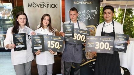 Temperaturen jenseits der 30-Grad-Marke boten den idealen Rahmen für den jüngsten Mövenpick-Eisdessert-Wettbewerb. Für die eiskalte Abkühlung sorgten die vier Finalisten bei dem Event auf der Wiener Summerstage. Die talentierten Nachwuchskräfte stellten eindrucksvoll unter Beweis, dass ein Eisdessert so viel mehr ist als nur eine Kugel Eis.