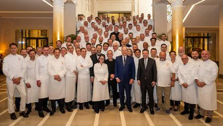 Organisiert im majestätischen Rahmen der Salle Empire des Hôtel de Paris Monte-Carlo sowie im Louis XV-Alain Ducasse brachte dieses Dinner 110 Zwei- und Drei-Sterne-Köche zusammen und ermöglichte eine seltene Begegnung zwischen einigen der größten Persönlichkeiten der Gastronomie.