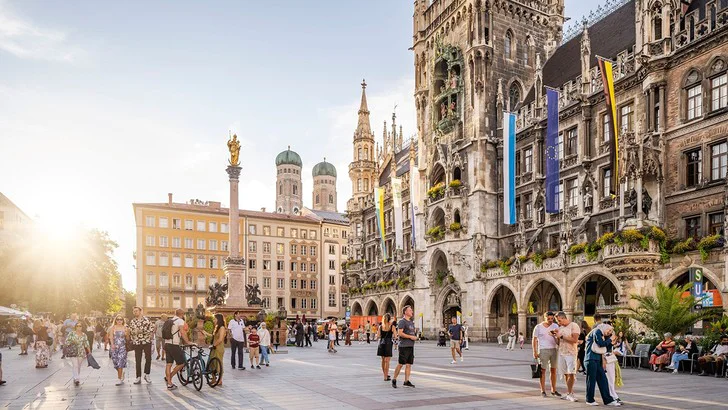 Blick auf den Münchner Marienplatz mit Rathaus